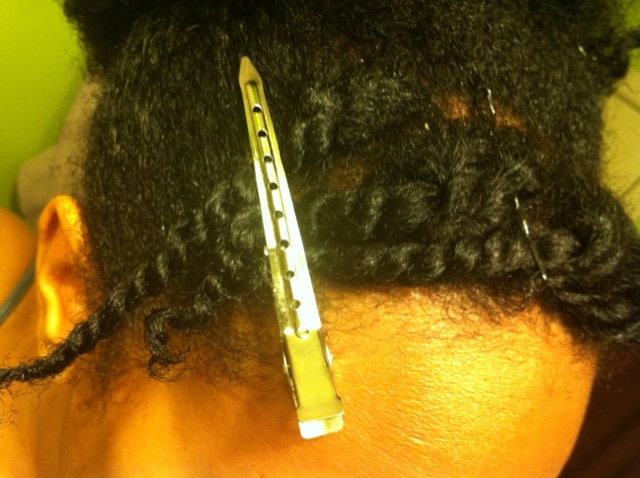 Wash. I can no longer wash my hair in the sink...bummer...this process has to be completed in the shower and usually takes me about 30 minutes to thoroughly cleanse my hair. Every four weeks, I will use a shampoo, any other wash is with a conditioner. Once my hair is completely saturated, which usually takes about 3 minutes of standing under the water, I will separate my hair into 4 sections. I wash and rinse each section separately. Then I move onto conditioning, which I rely on my 4 sections again. Using a Denman brush, I detangle each section and twist as they are detangled. I don’t necessarily rinse my conditioner out. Just a quick wet and ring out!