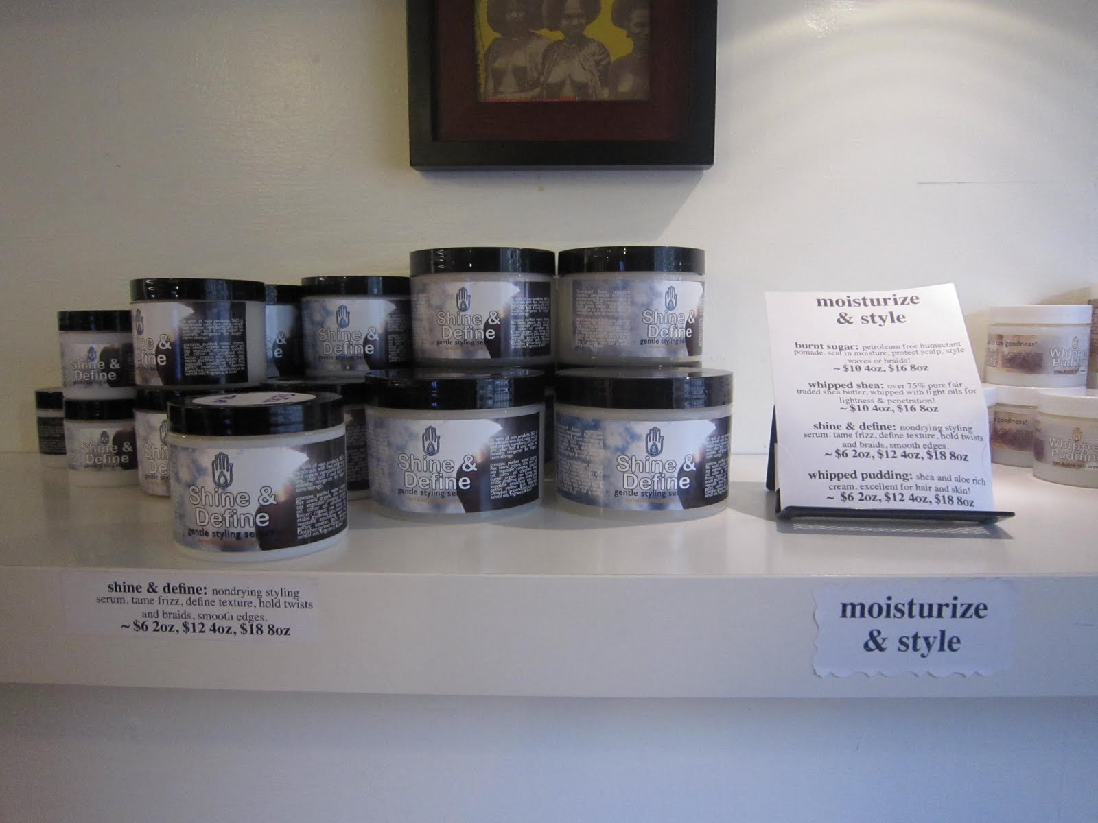 Safi's Natural HairCare Hairsicle Cream & Avocado Shea Butter, Oyin's Burnt Sugar Pomade & Honey Hemp Conditioner, and the Shea Moisture Coconut & Hibiscus Line