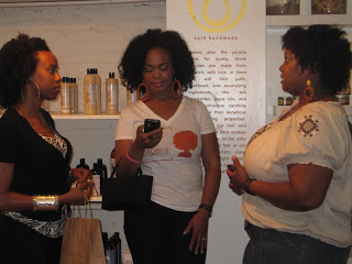 I had so much fun today at the Curly Nikki natural hair meet up! Keeta, my "big sis", LOL, invited me to come and I jumped at the opportunity. We were meeting the other women at the Oyin Handmade store in Baltimore, MD and I was super excited to go. I LOVE OYIN and I needed to restock on some goodies. The Oyin store is so cute and I am so glad I was able to FINALLY see the store in person. I will definitely be going back. I saw a few familiar faces and all off the ladies were super nice and their hair, *swoons*, GORGEOUS! Of course, I snapped some pics to share with you all. I hope you enjoy, we had a blast!