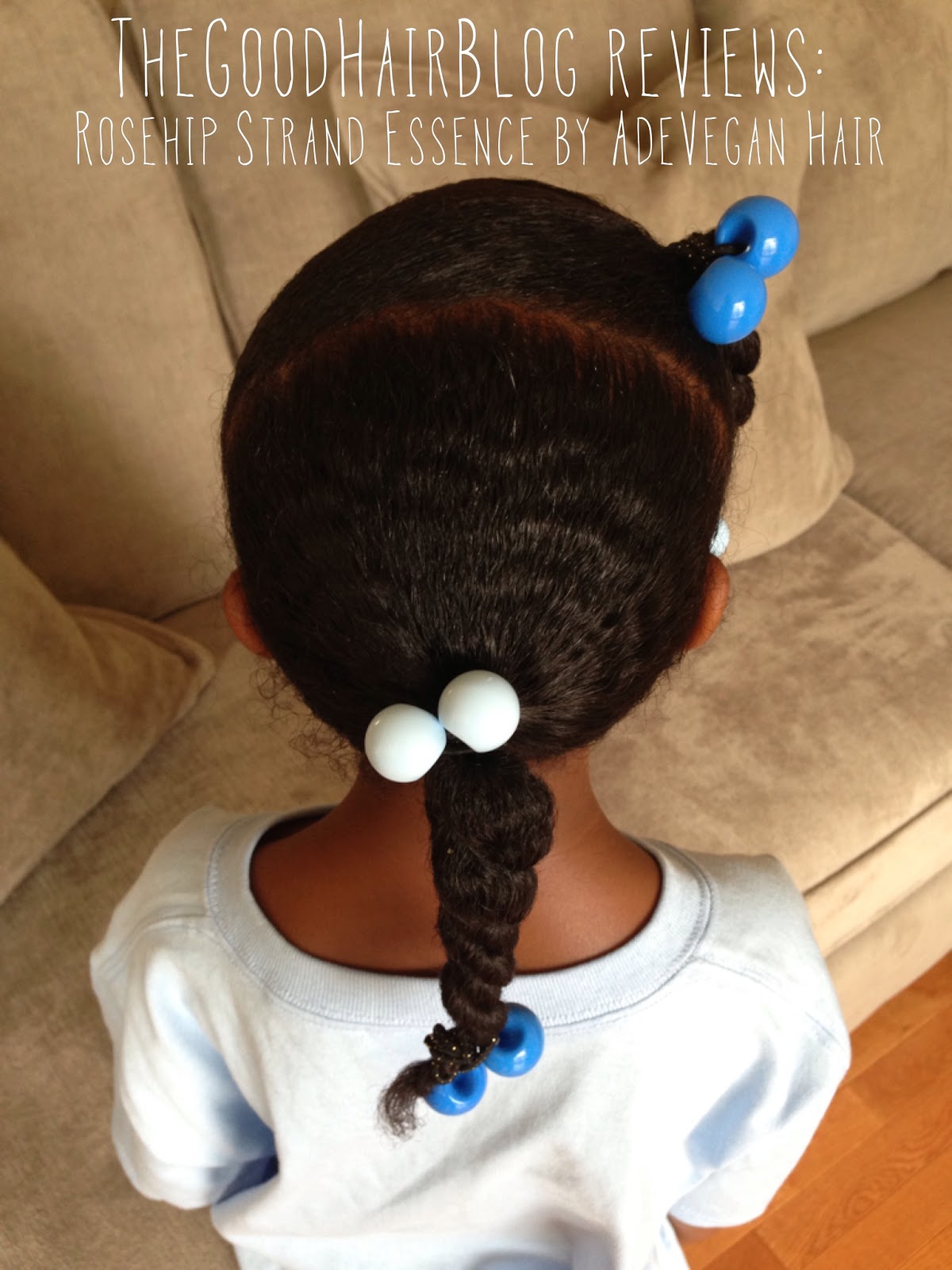 CharBaby's fine strands are easily weighed down but products. I have finally found a lightweight whipped butter that works wonders on her curls. Ade Vegan Hair has released a product called "Rosehip Strand Essence" that was formulated for naturals with finer hair in mind. It doesn't take much to lay CharBaby's hair down but most of the time the slick look only lasts about 2 hours. I was pleasantly surprised that Ade's product not only laid her hair down but kept it frizz free for the entire day.
