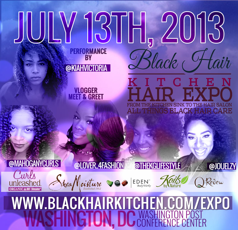 BlackHairKitchen.com is hosting a major hair expo in Downtown Washington DC on Saturday, July 13th (which also happens to be the opening weekend of the Delta Sigma Theta Centennial Convention). They are bringing out hair companies from across the Black hair care spectrum and the event will be hosted by YouTube bloggers MahoganyCurls, Lover4Fashion, TheKGLifestyle and Jouelzy.